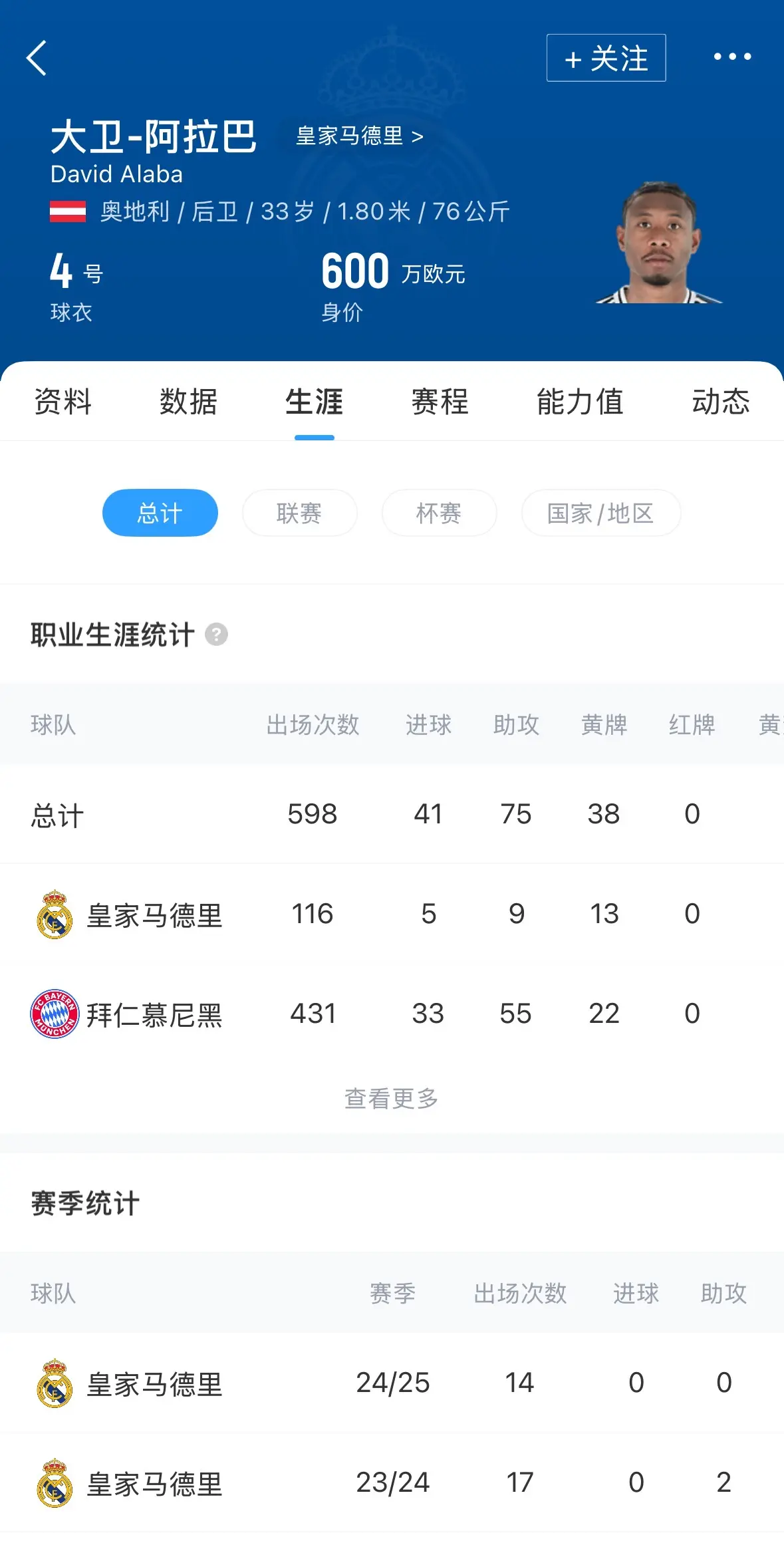 报道称,阿拉巴目前合同将于2026年到期和业众,目前没有续约迹象,也看不到续约可能。频繁的伤病加上队内中卫激烈竞争,让球员陷入困境。而明年他还希望参加美加墨世界杯。
