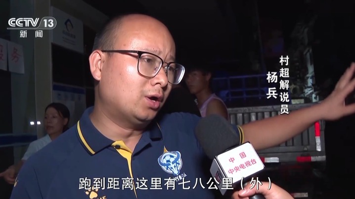 在抗洪现场的“村超”人,还有位民间解说员,杨兵。他是一家县级银行的行长,面对全县断电的困难,协调拿出了银行的发电机,免费提供手机充电服务。让居民在焦急时刻,能与亲人保持联系,报个平安。