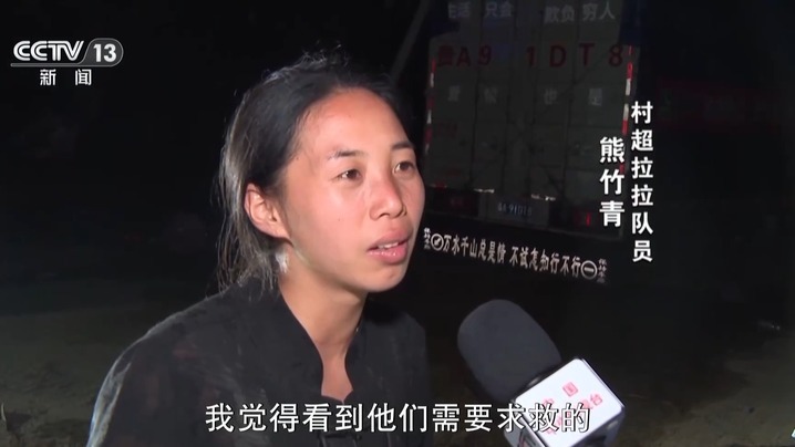 榕江县小瑞村足球队拉拉队队长 杨玉碧:我们又没电又没水,所以我就恨不得很快就能来到这里,哪怕我能够炒一盘菜,尽快赶时间,让救援人员更快地能够吃上饭,能够有力气。