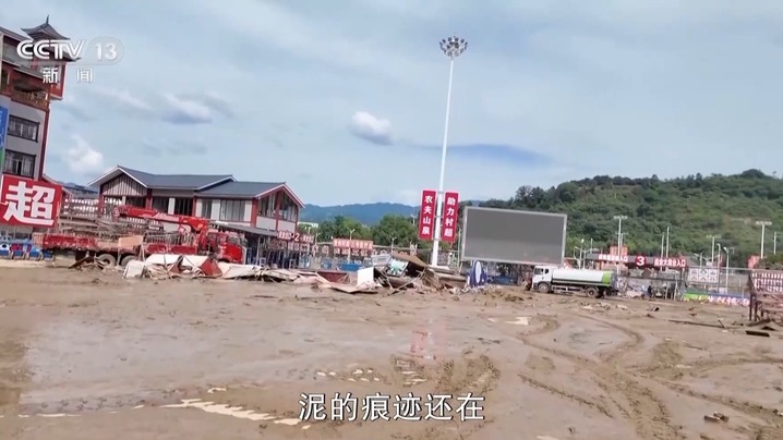 总台记者 尹平:当时洪水在这里冲击力有多大?可以看一下旁边的村超球场大屏幕,泥的痕迹还在,这就是当时洪水最高的位置,大概超过了5米。在淤泥掩盖之下,就是踢球的人造草坪,现在已经全部被洪水掀掉了,只剩下一些残迹。